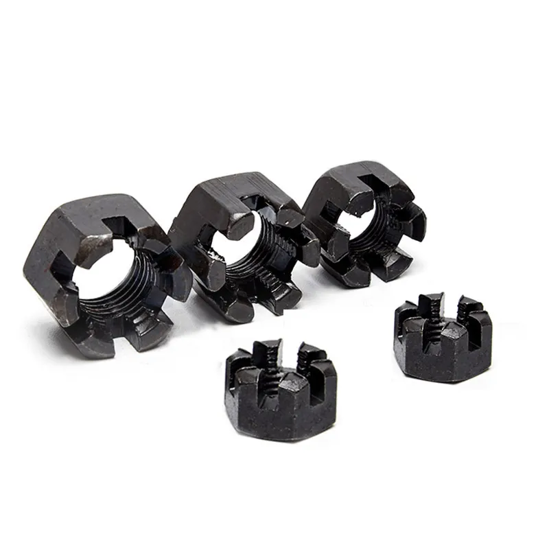 A slotted nut is a specialized hex nut with multiple vertical slots machined into its top portion. These slots are designed to align with a hole drilled through the mating bolt, allowing a cotter pin or wire to be inserted. This creates a positive mechanical lock, preventing the nut from rotating or loosening under severe vibration and dynamic loads.